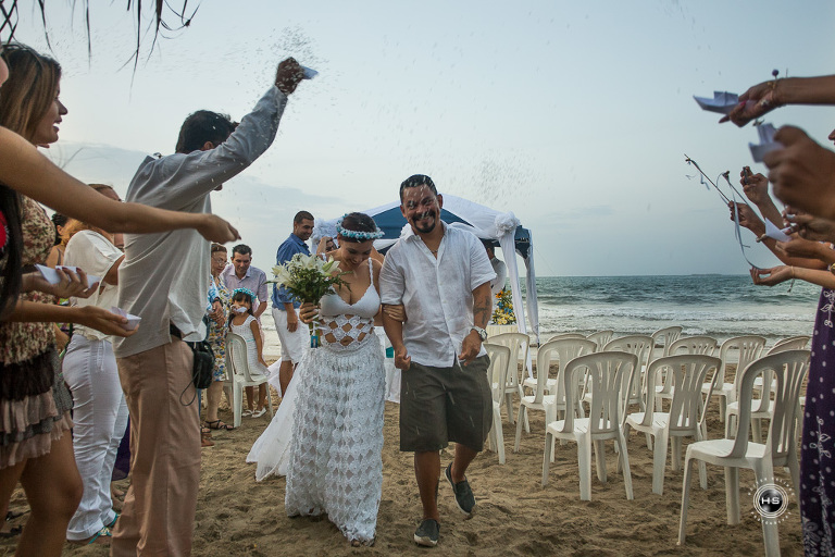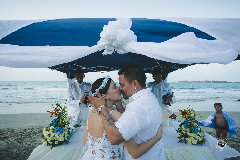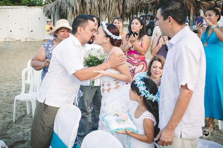 Las olas del mar de Chichiriviche fueron el escenario perfecto para la unión de esta linda pareja, ella con un traje tejido por su madre, engalanado con 520 perlas y un año entero de trabajo, y el con su particular bermuda y guayabera, que hicieron de esta ceremonia una de las más hermosas y emotivas a la que hemos asistido.